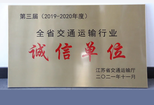 2021年獲第三屆(2019-2020年度)江蘇省交通運(yùn)輸行業(yè)“誠信單位”稱號